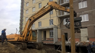 Экскаватор Hyndai 320 оснащен вибропогружателем